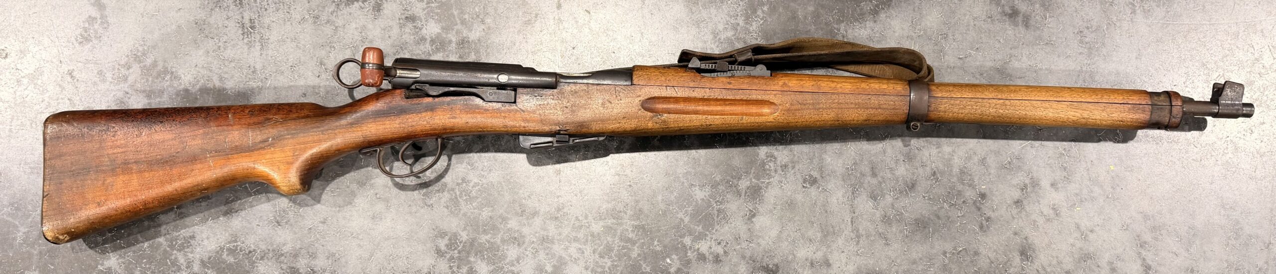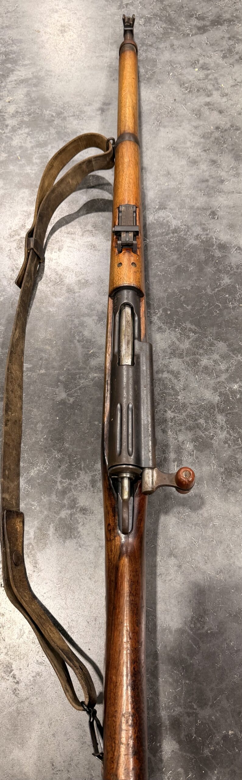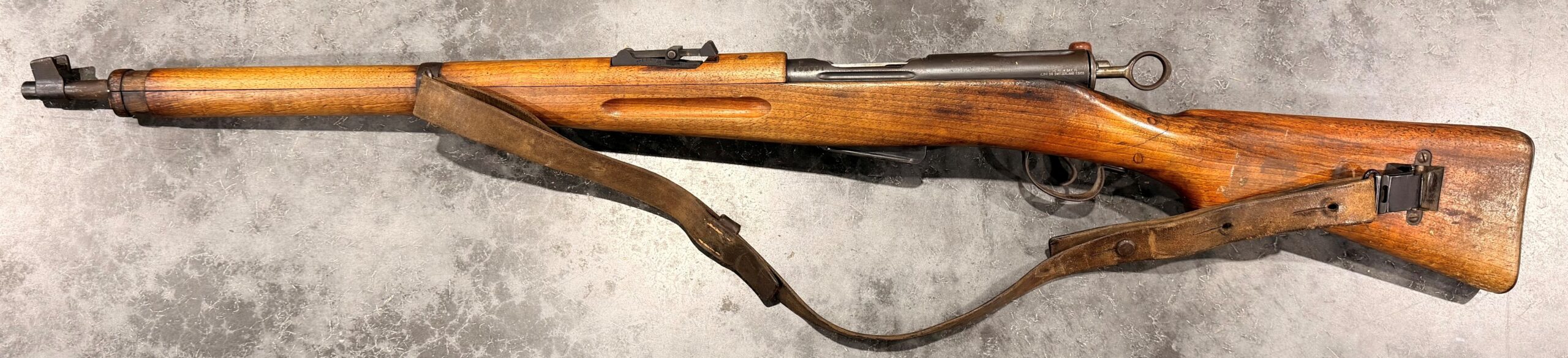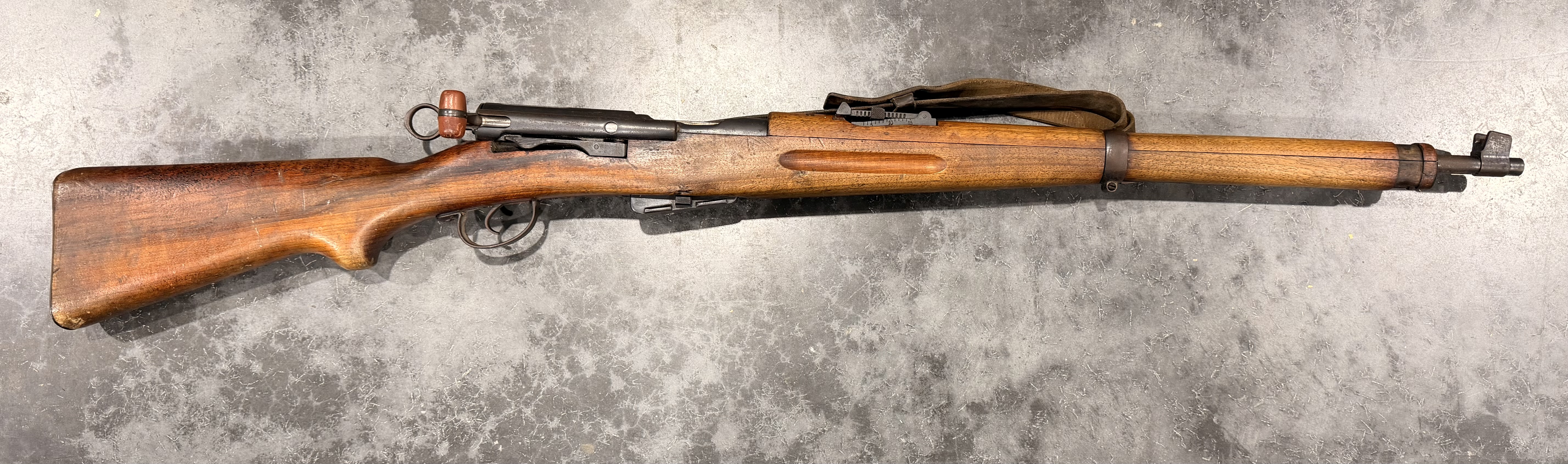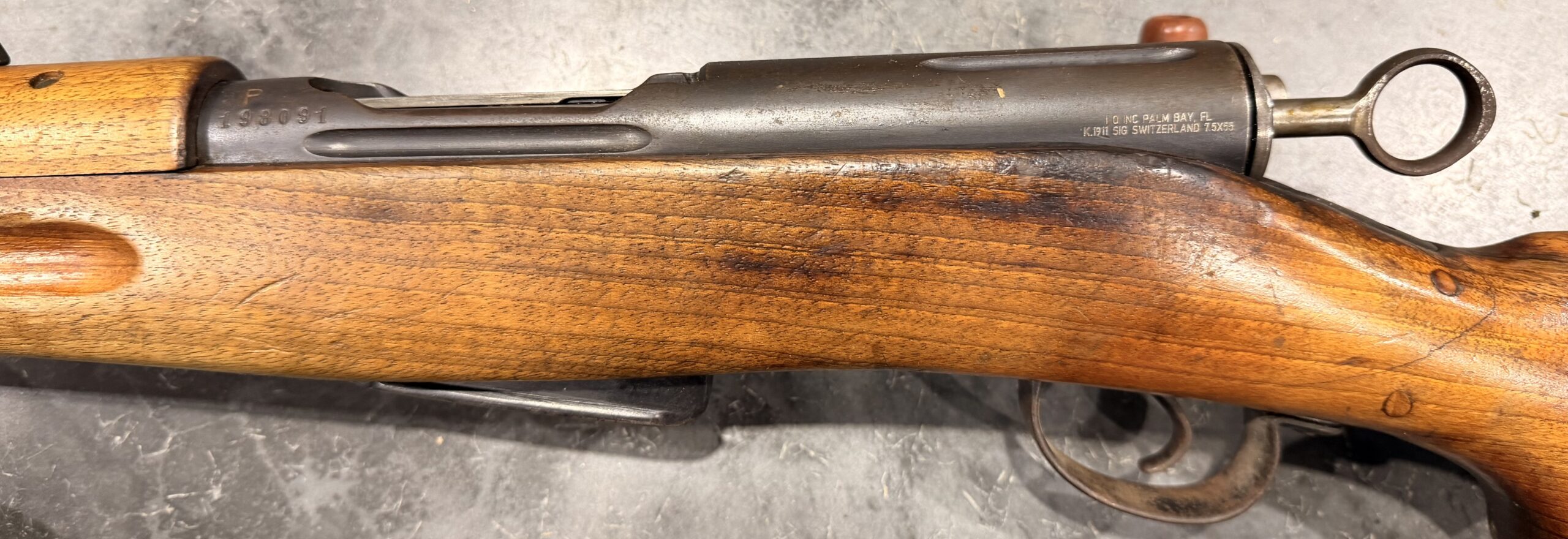 This carbine features matching numbers on the receiver and bolt, but the magazine is not matching. It is complete, fully functional, and in fair condition. The bore is in very good condition, with strong rifling and a clean overall appearance. Please note there is a crack behind the receiver at the wrist and the charging handle is cracked.