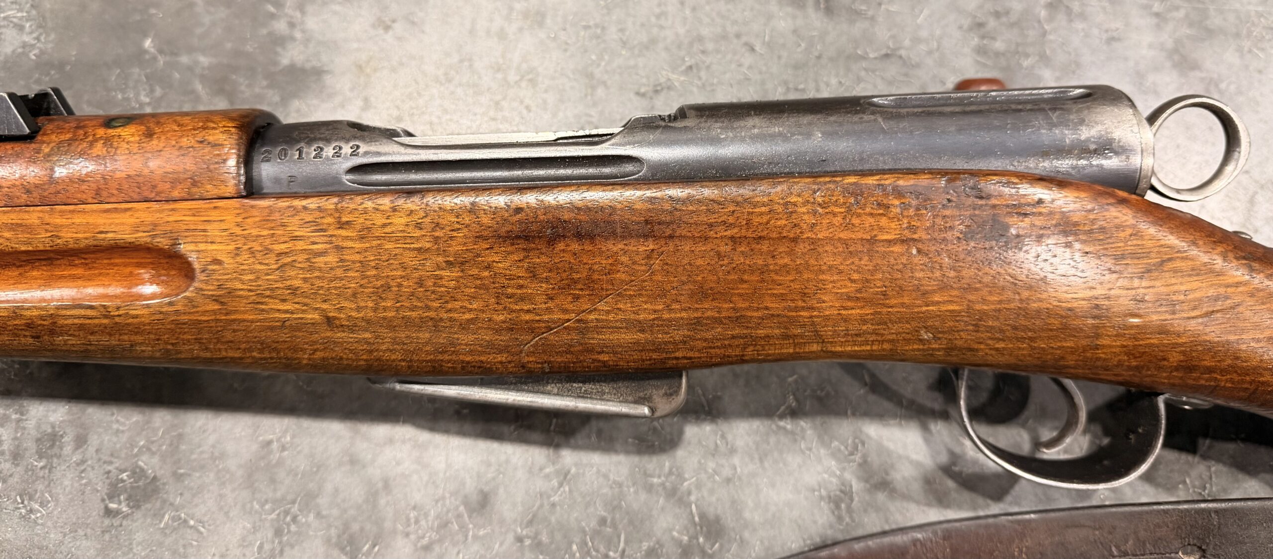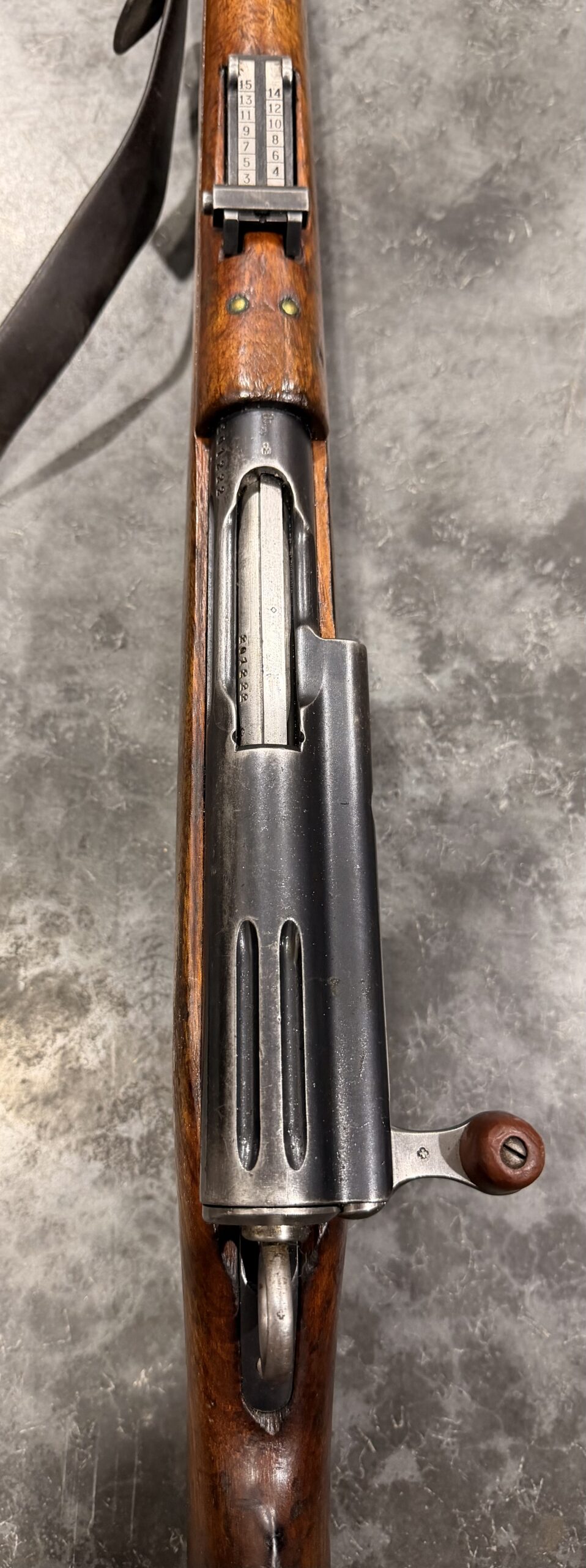 This carbine features matching numbers on the receiver, bolt and magazine. It is complete, fully functional, and in good condition. The bore is in excellent condition, with strong rifling and a clean overall appearance.