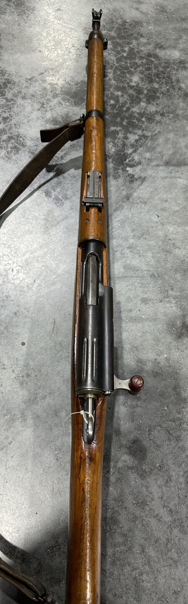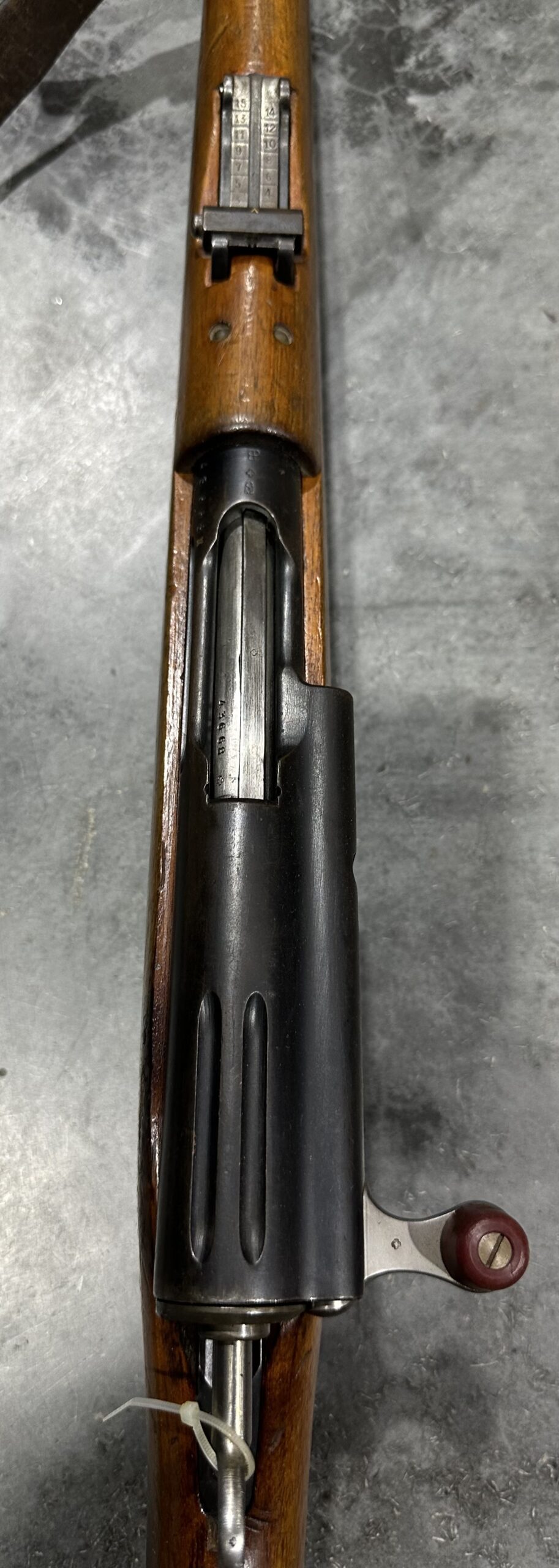 This carbine features matching numbers on the receiver, bolt, and magazine. It is complete, fully functional, and in good condition. The bore is very good, with strong grooves and a clean overall appearance.