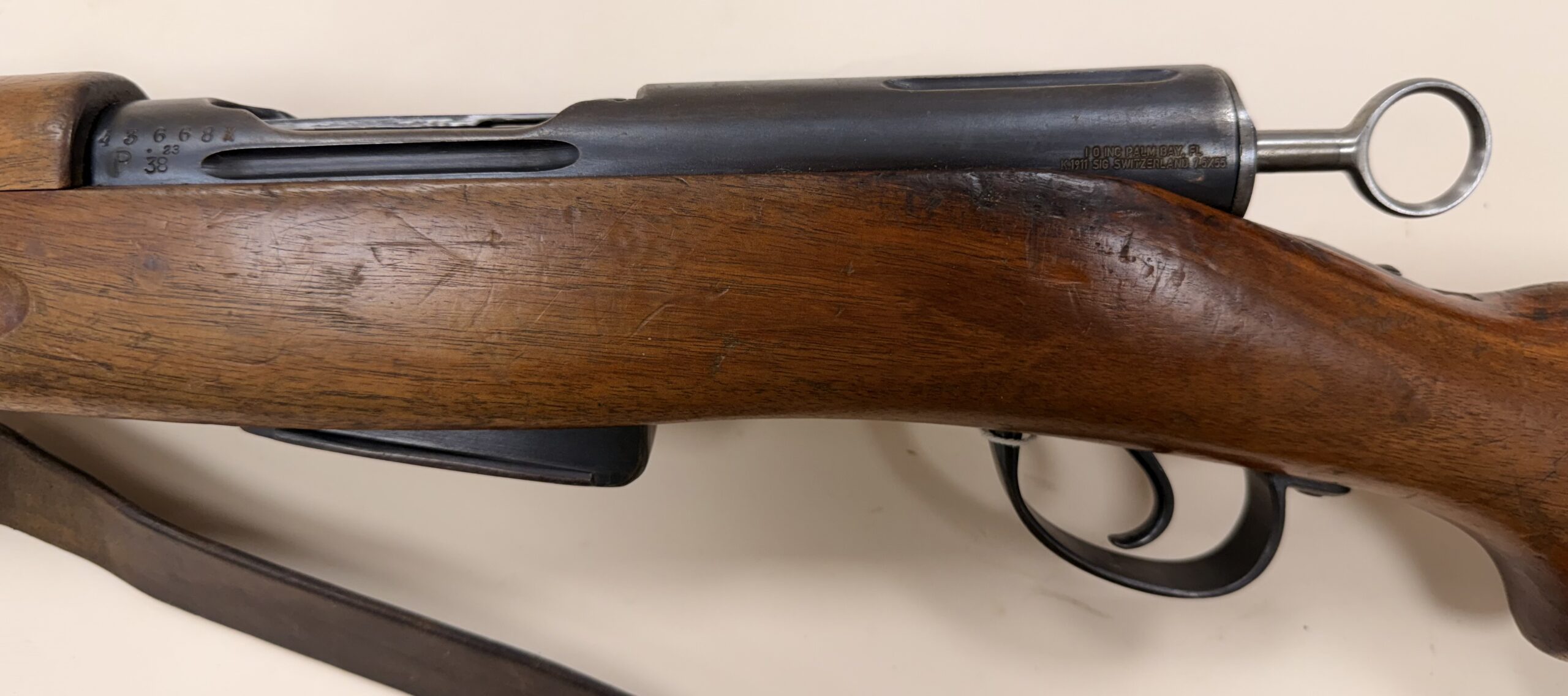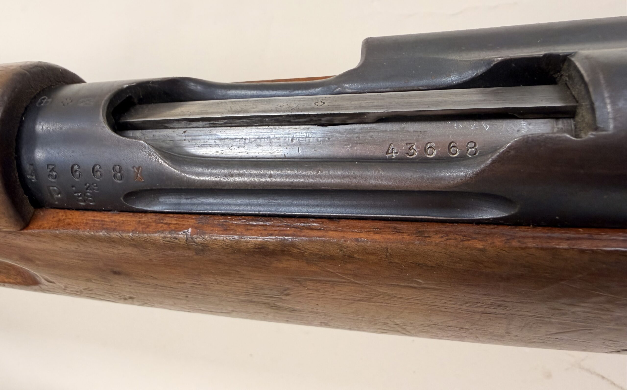 Offered for auction is a Swiss Model K11 Carbine, serial number 43668X, a well-preserved example of Swiss military craftsmanship. This carbine features matching numbers on the receiver, bolt, and magazine, an important and desirable detail for collectors. The rifle is complete, fully functional, and in good overall condition. The bore is very good, with strong, sharp grooves and a clean appearance, reflecting the high standards of Swiss maintenance and care. Please review the detailed photos above for a closer look at condition and features. Comes with FREE sling.