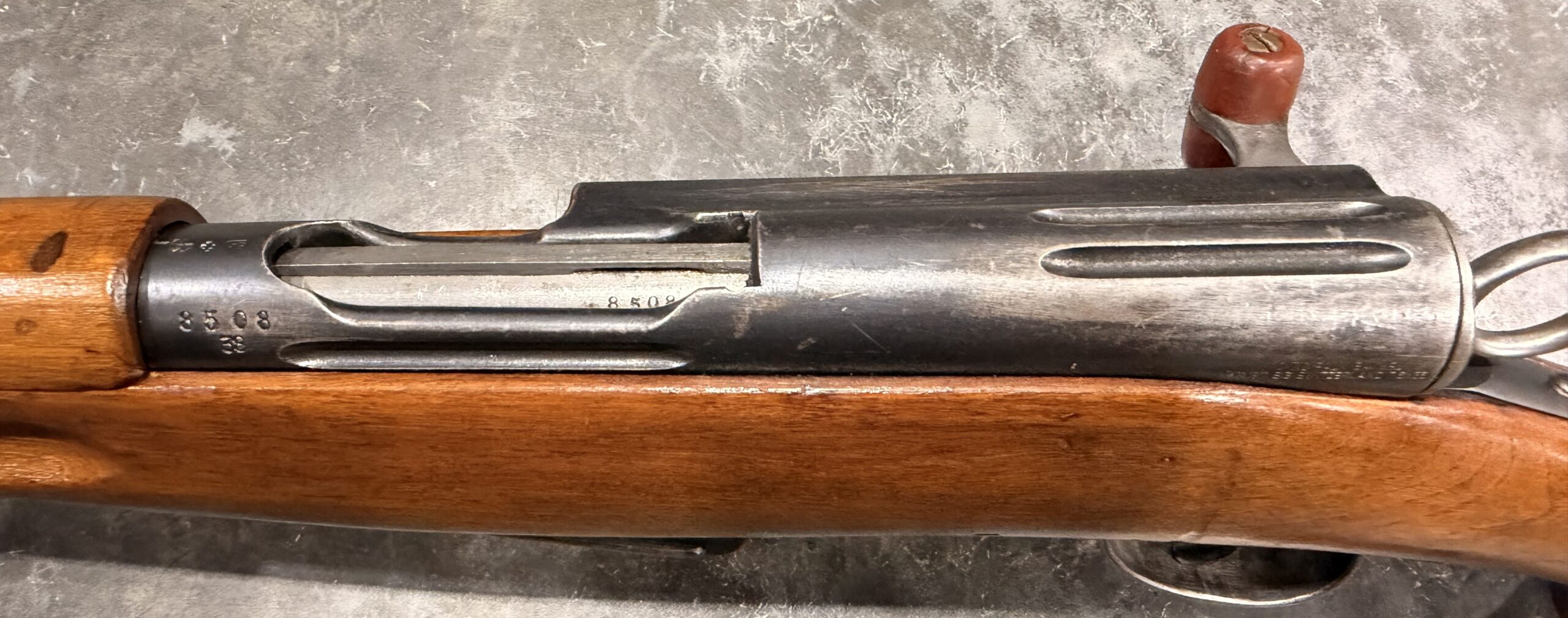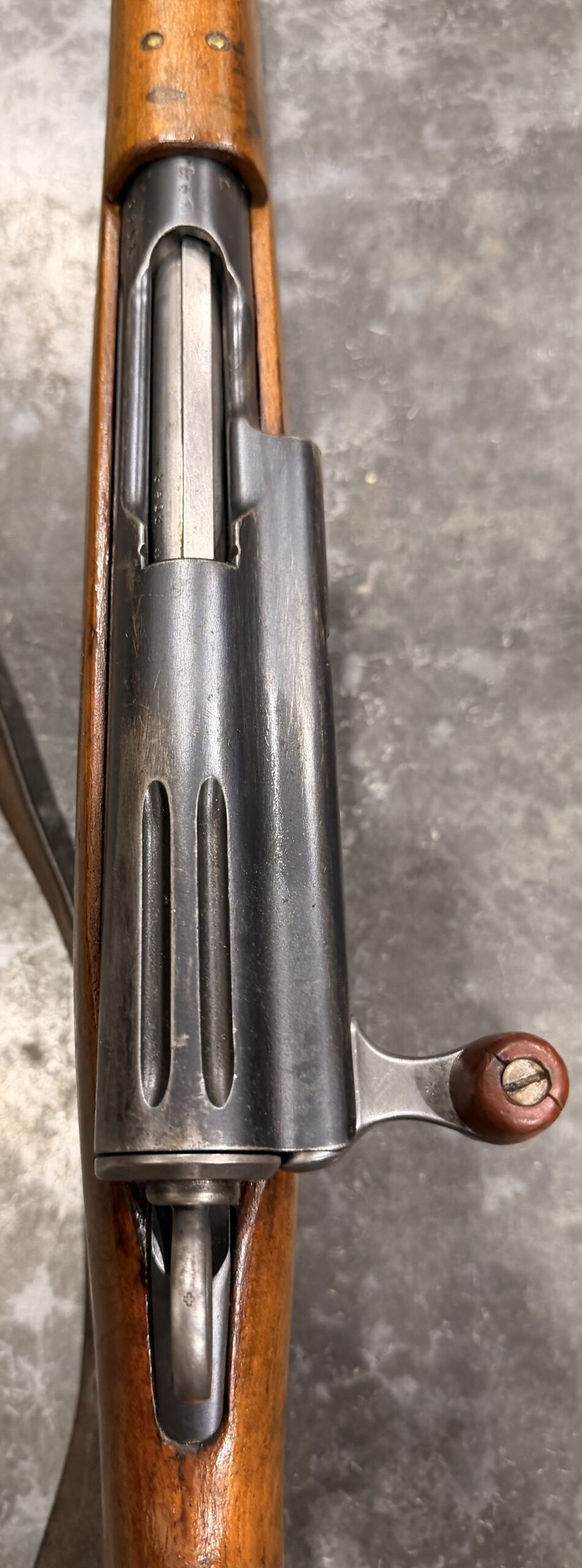 This carbine features an early serial number with matching numbers on the receiver, bolt and magazine. It is complete, fully functional, and in very good condition. The bore is in excellent condition, with strong rifling and a clean overall appearance.