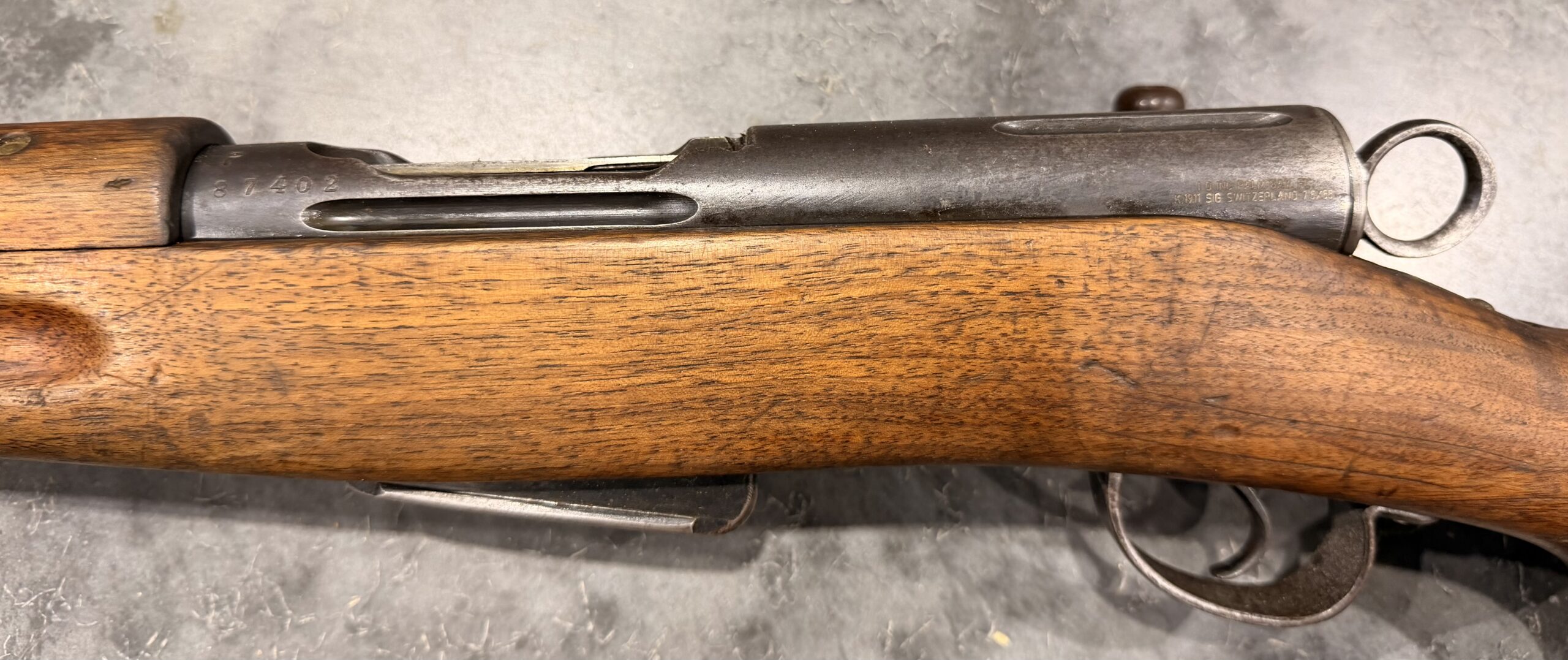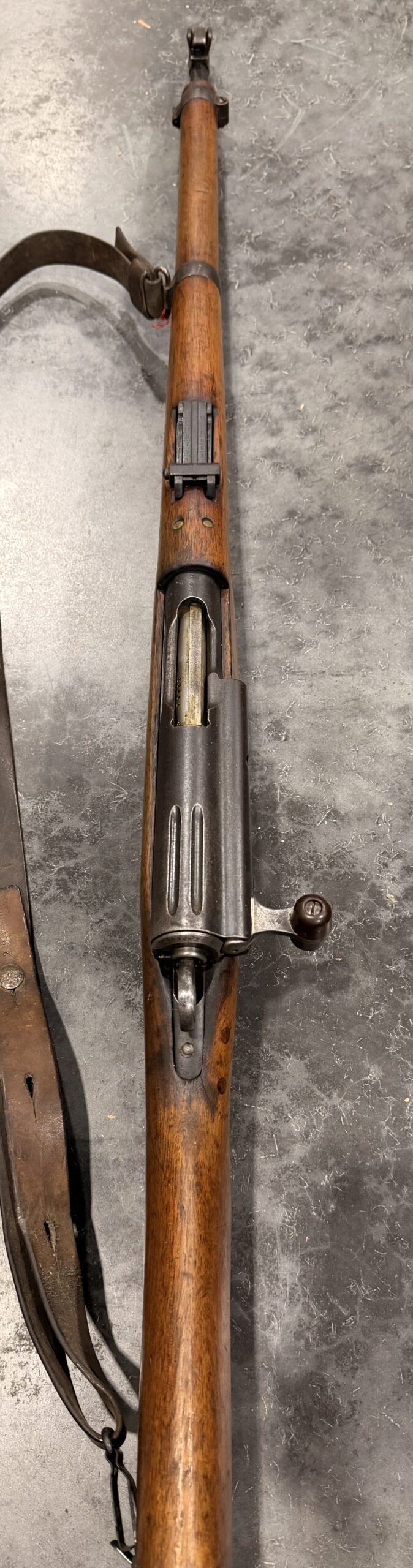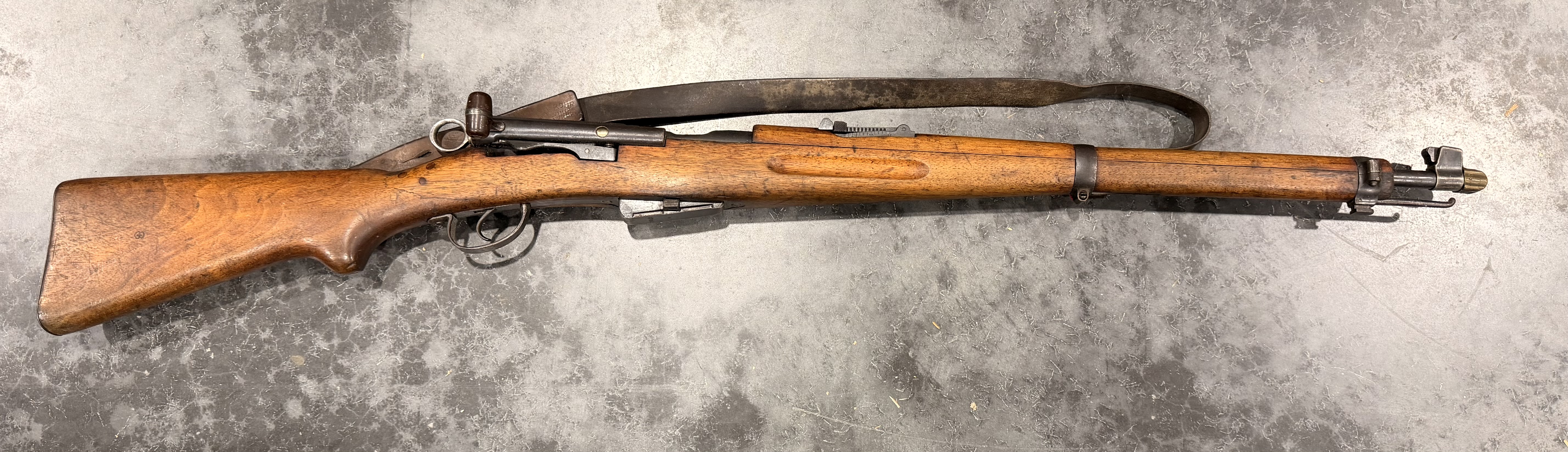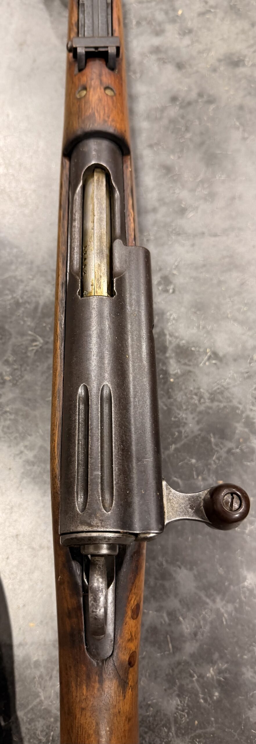 This carbine features matching numbers on the receiver, bolt and magazine. It is complete, fully functional, and in good condition. The bore is in excellent condition, with strong rifling and a clean overall appearance. Please note there is a crack behind the receiver at the wrist.