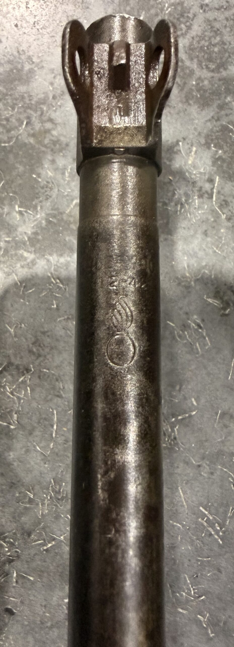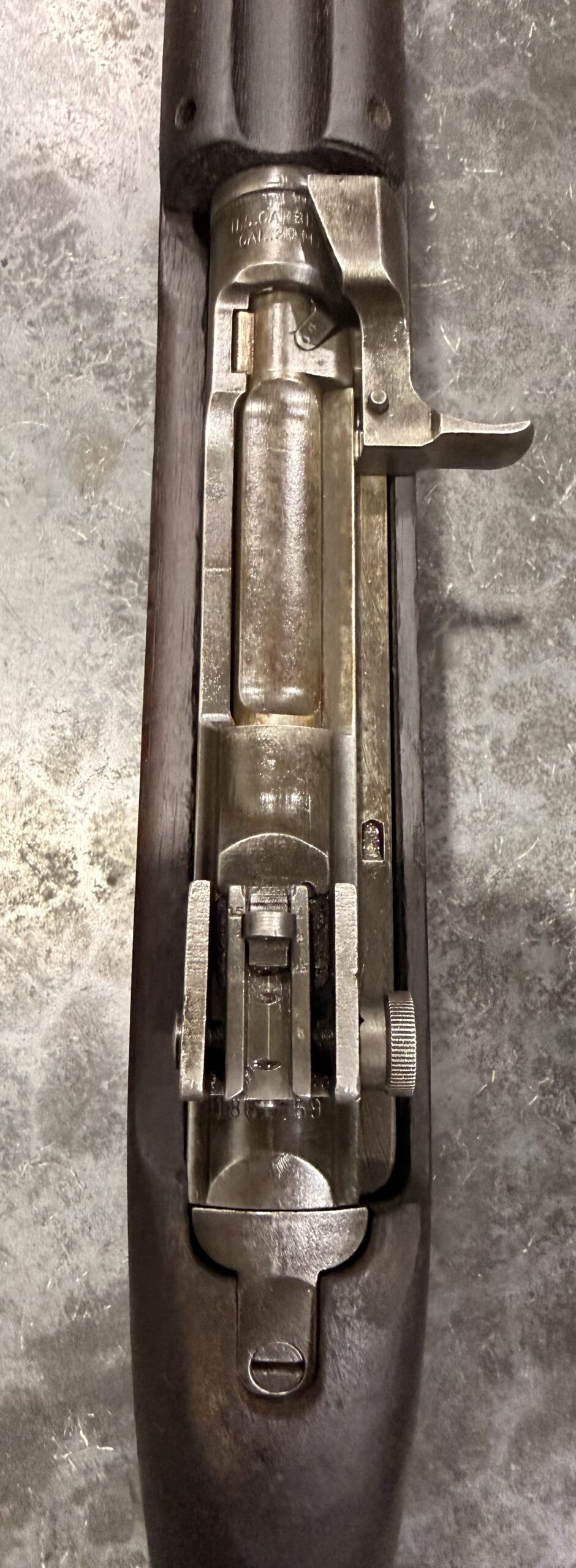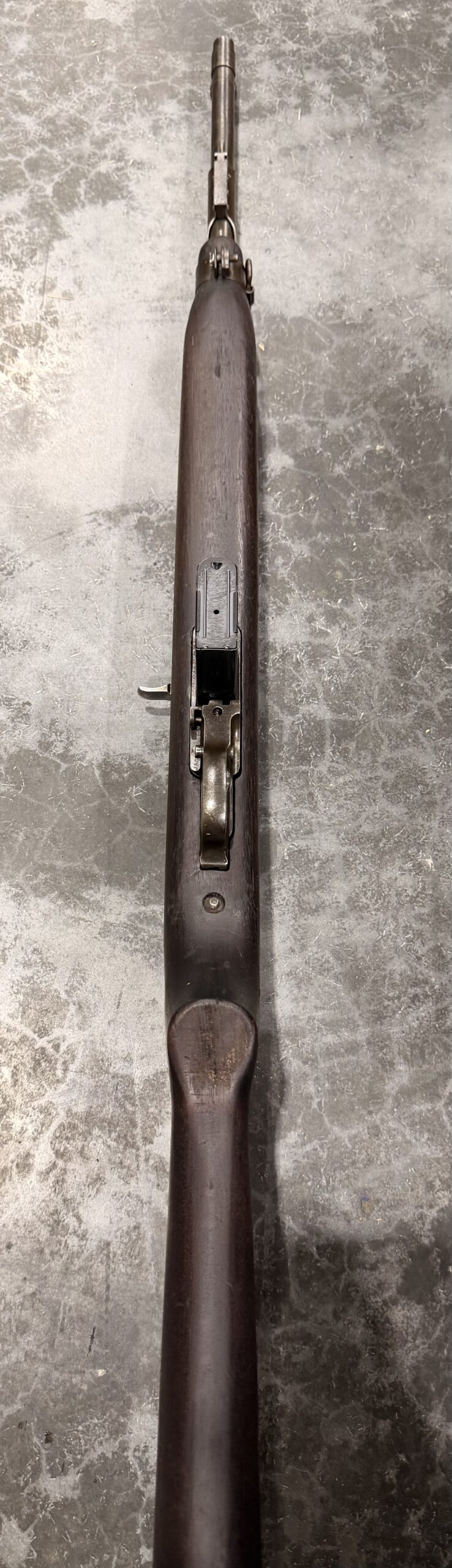 The stock is in good overall shape. The bore gauges at 0.5 and remains in good condition but needs some additional cleaning. The barrel is Underwood-marked and dated 12-42.