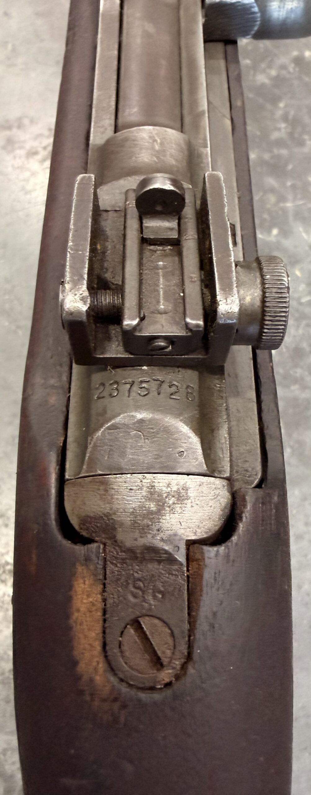 This carbine features a Type II rear sight, a Type III front barrel band. The receiver, barrel, and trigger group are in very good condition.