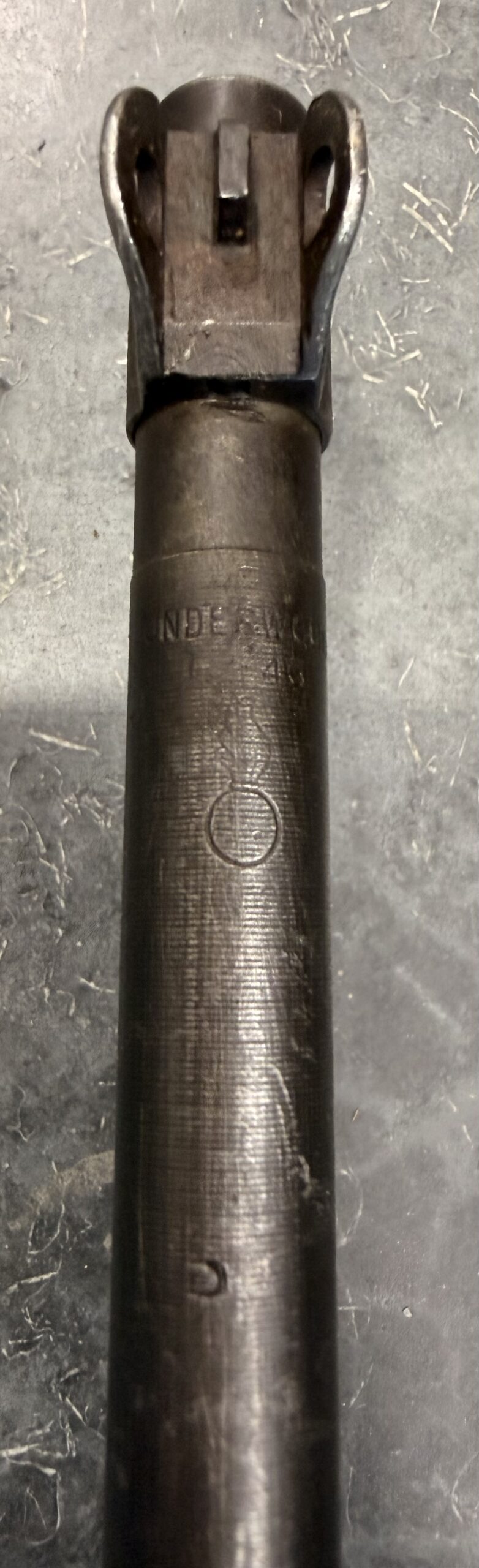 The bore gauges at 2.5 and remains in very good condition. The barrel is Underwood-marked 1-43-dated.