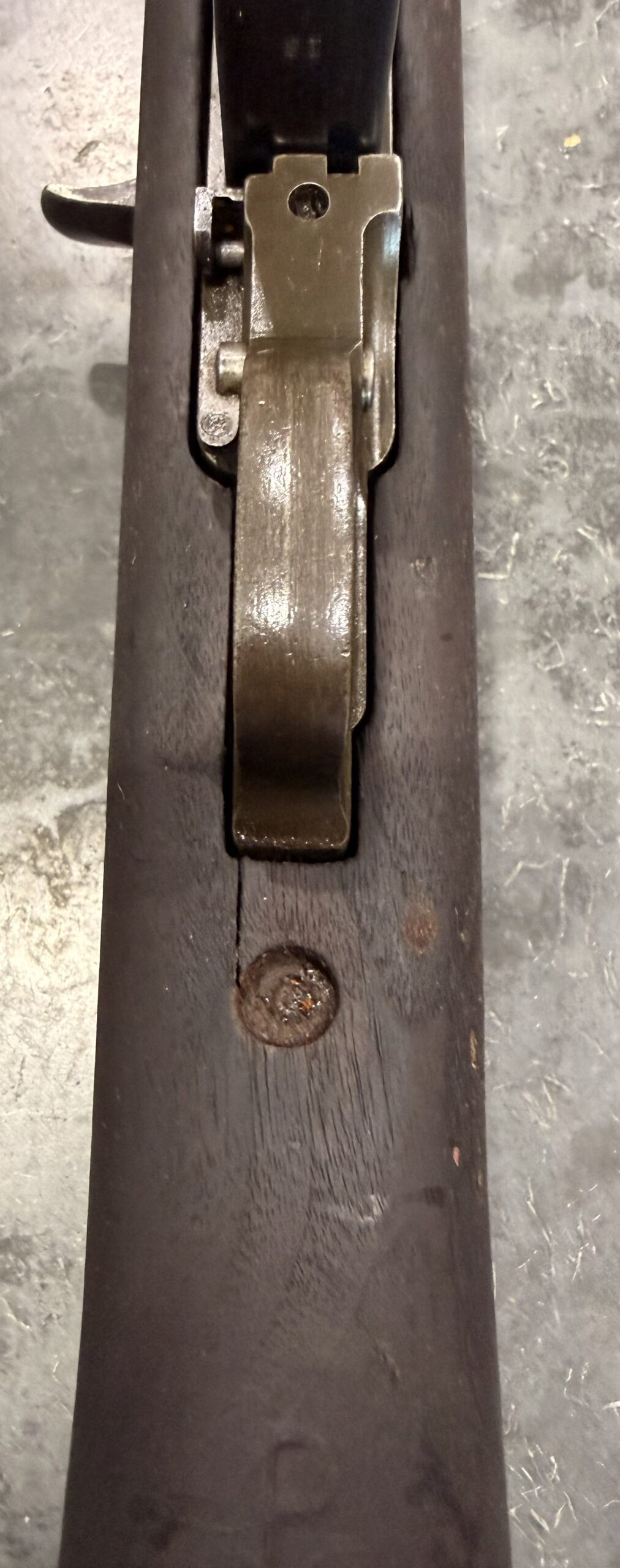 The stock is in very good overall shape but please note there is a small crack near the trigger. The finish remains in very good condition.