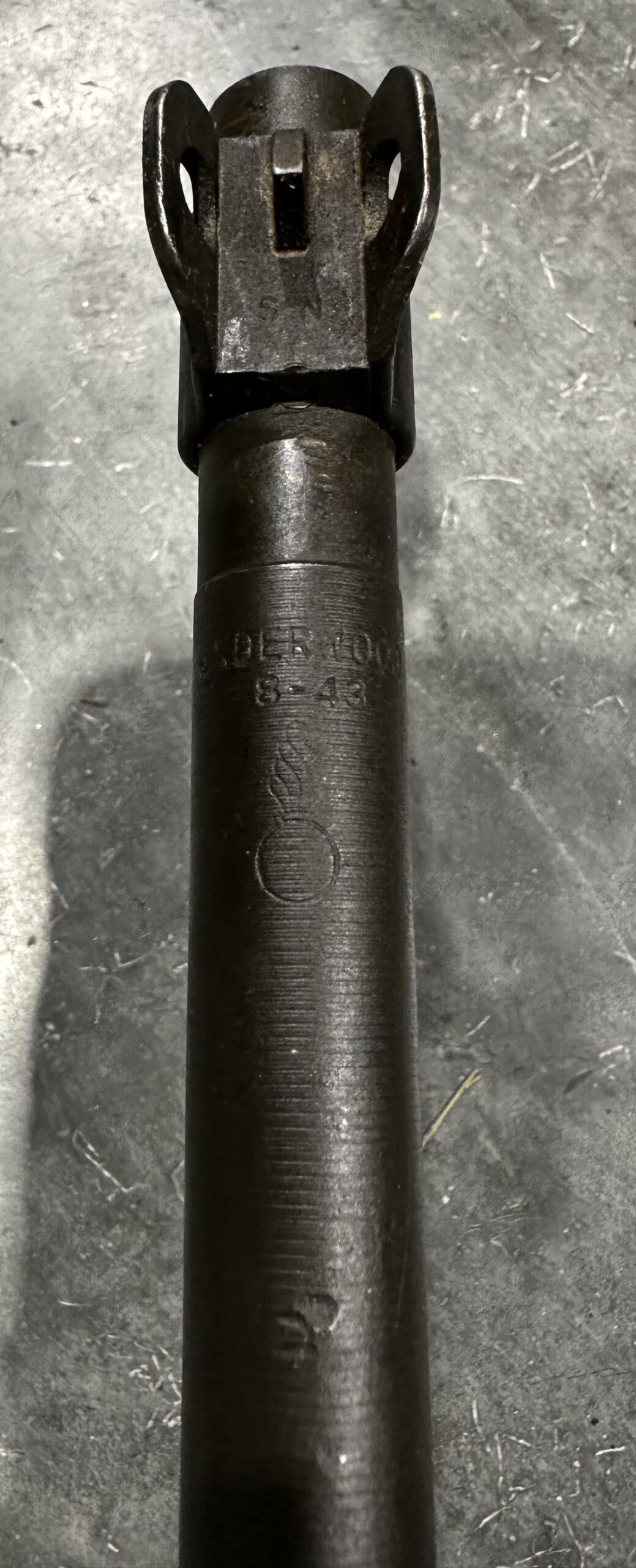 The stock is in good overall shape. The bore gauges at 1.5 and remains in very good condition. The barrel is Underwood-marked and dated 8-43.