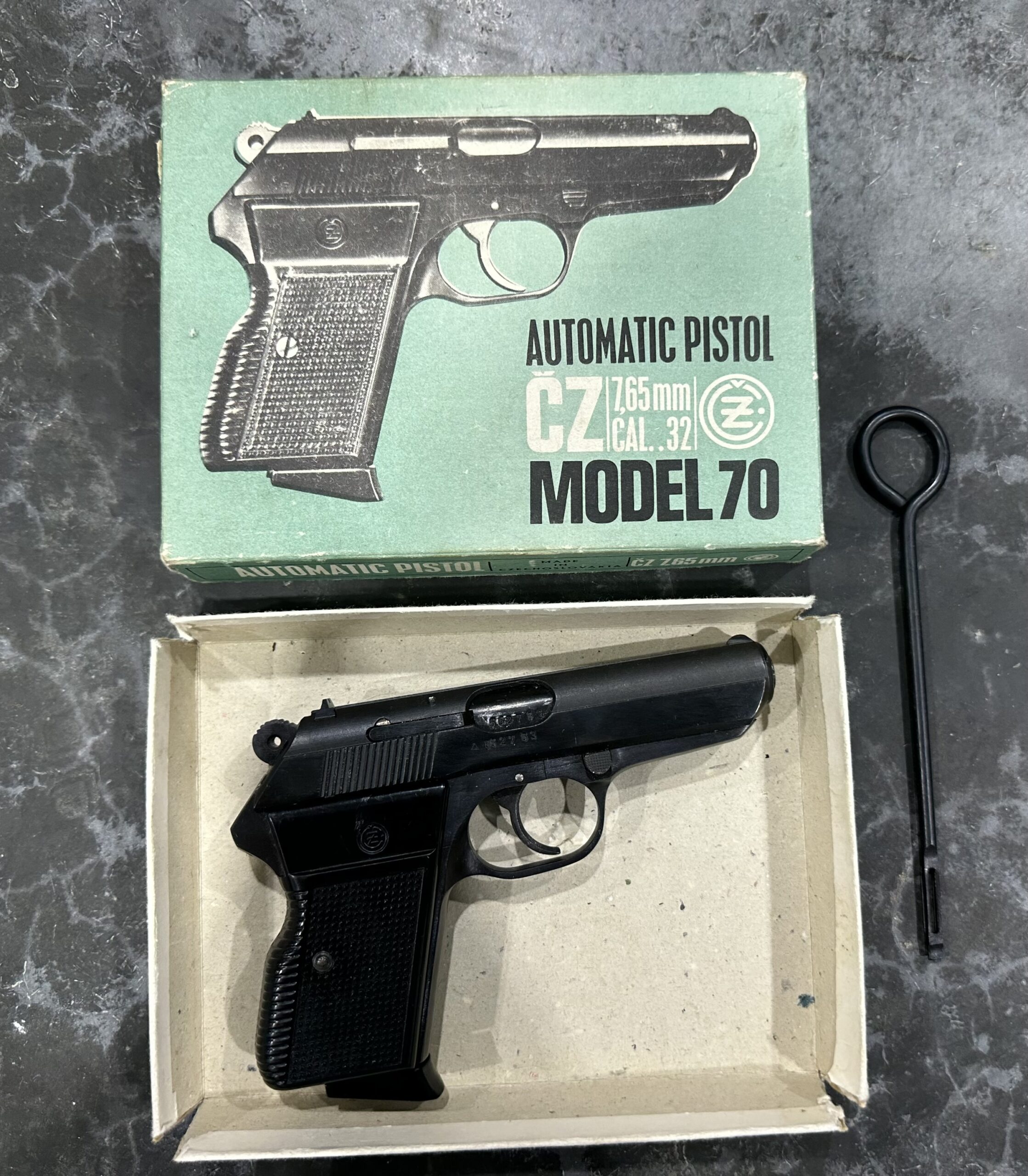 Czech VZ70/CZ70 pistol chambered in .32 ACP, serial number 662763. This pistol is in excellent condition. The grips are also in very good condition with no cracks. The bore is excellent with strong grooves. The pistol is numbers matching frame and slide. The pistol is 100% functional and comes with one magazine. The pistol is import marked on the rear strap underneath the hammer on the frame.