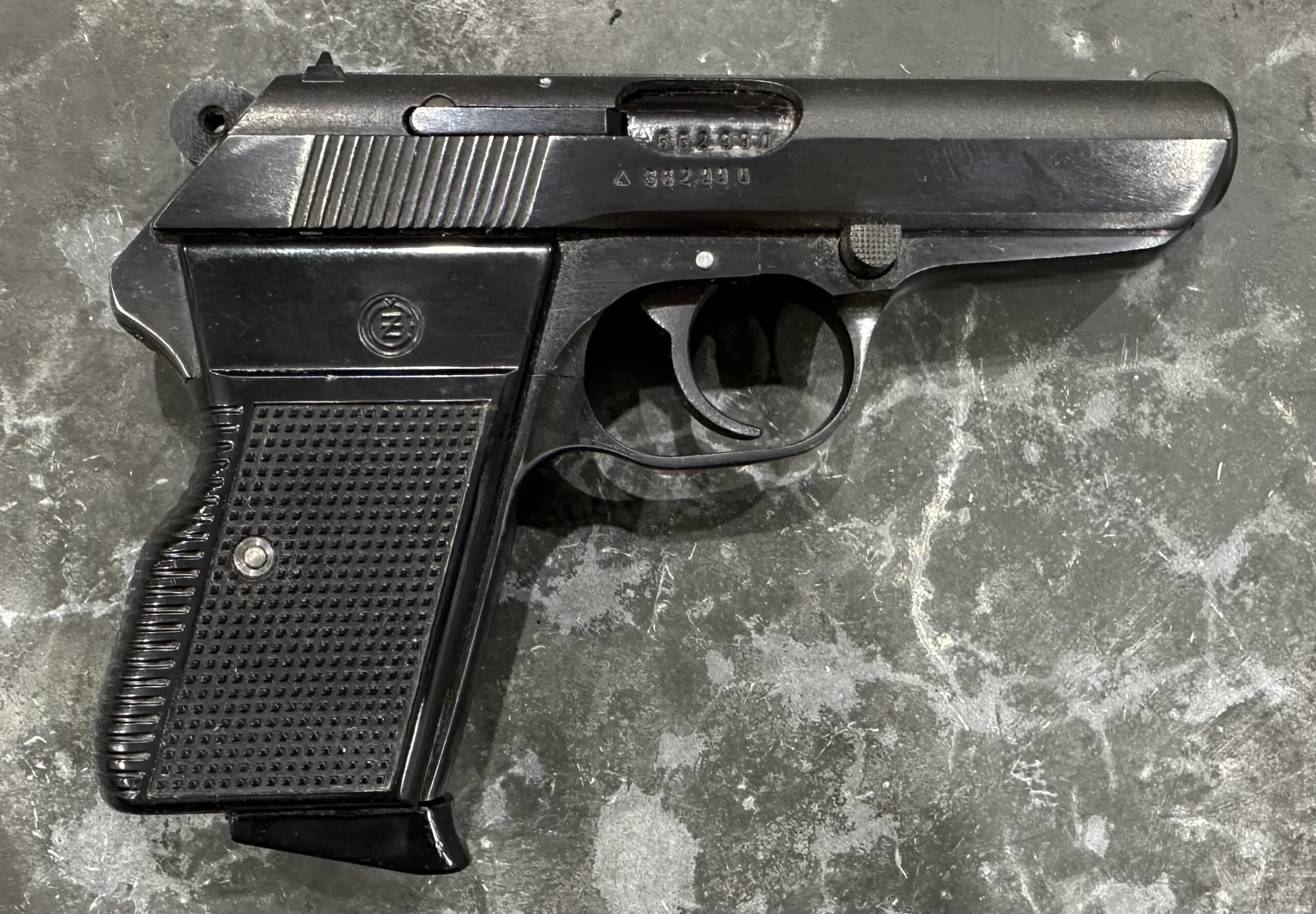 Czech VZ70/CZ70 pistol chambered in .32 ACP, serial number 662990. This pistol is in very good to excellent condition. The grips are also in very good condition with no cracks. The bore is excellent with strong grooves. The pistol is numbers matching frame and slide. The pistol is 100% functional and comes with one magazine. The pistol is import marked on the rear strap underneath the hammer on the frame.