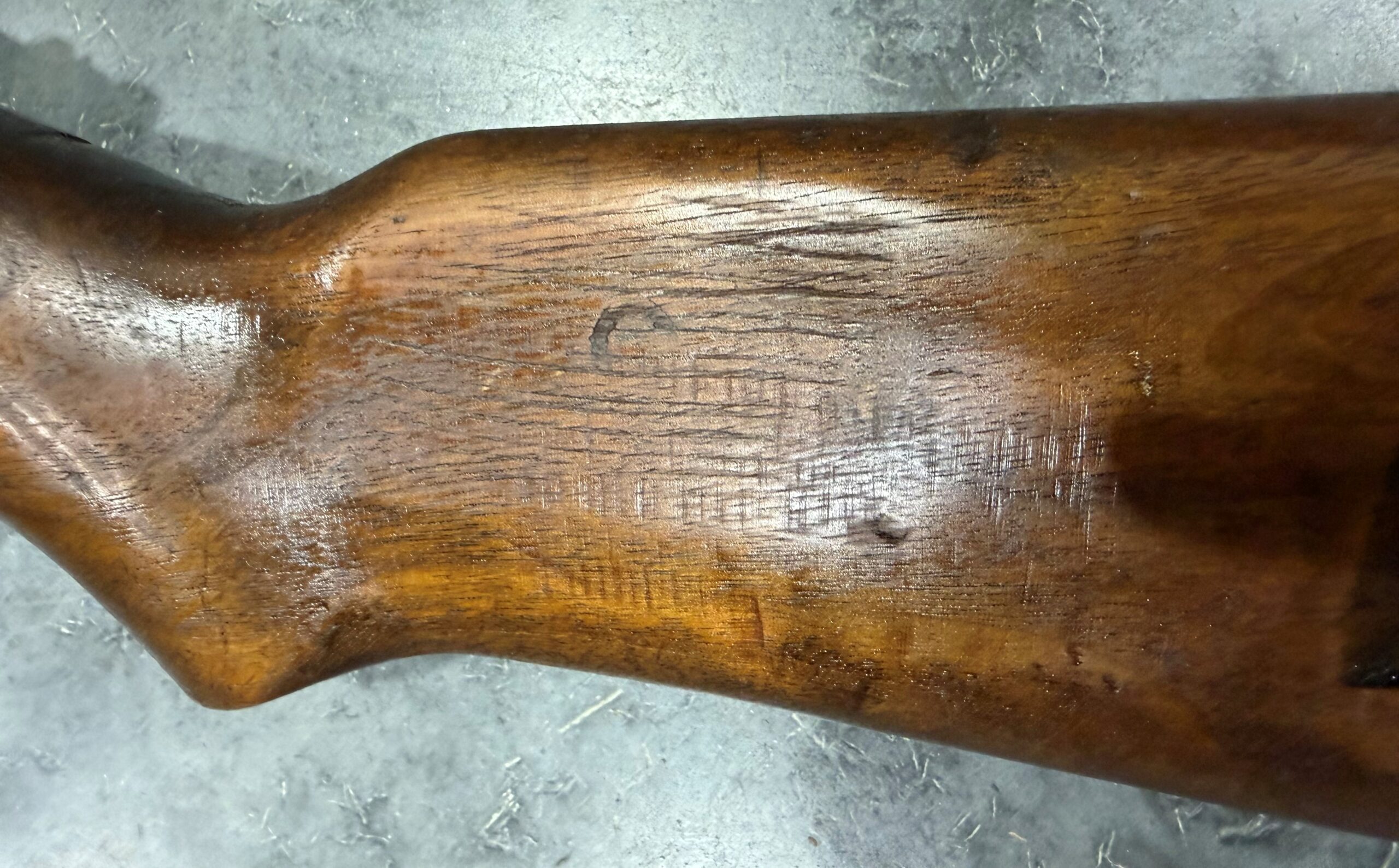 The stock is in good overall condition; however, please note that the wood on the left side of the stock, between the pistol grip and the sling slot, has been sanded. The finish remains in very good condition.