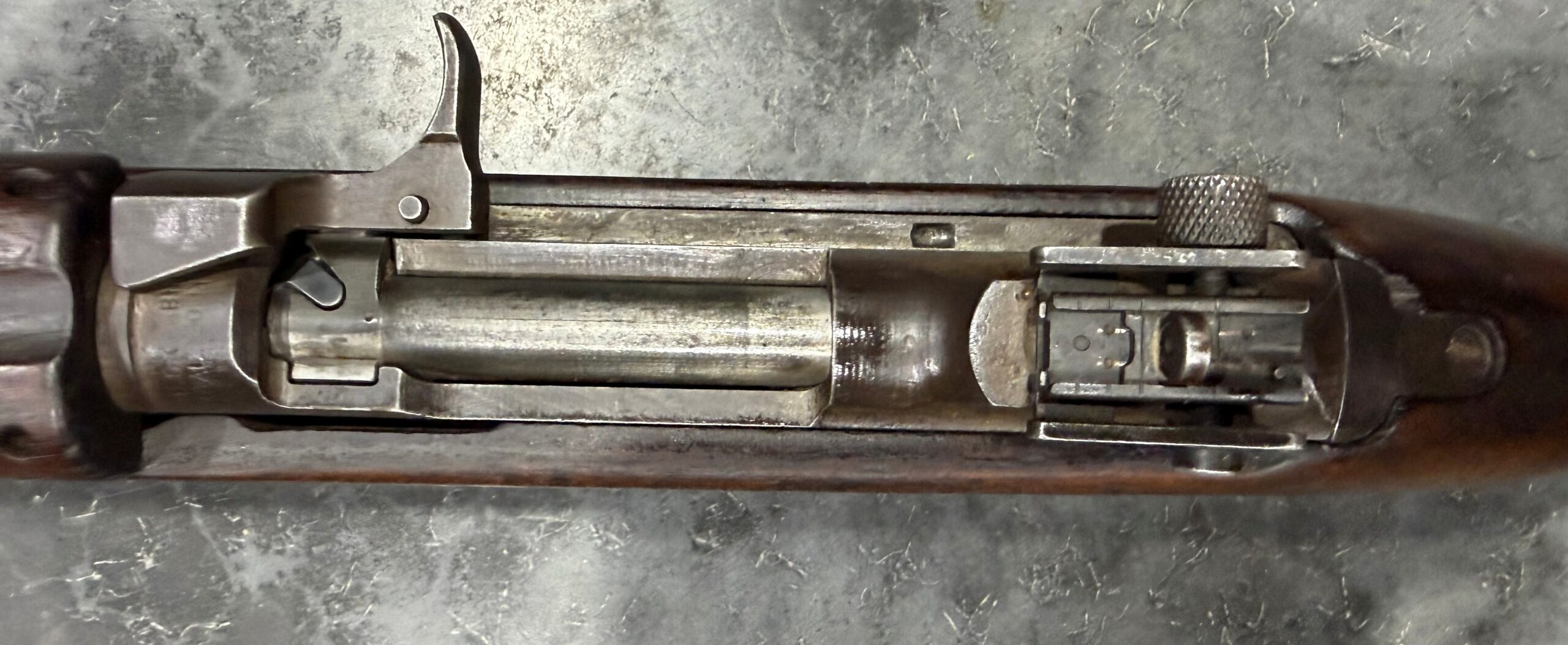 This carbine features a Type III rear sight and a Type III front barrel band. The receiver, barrel, and trigger group are in very good condition.