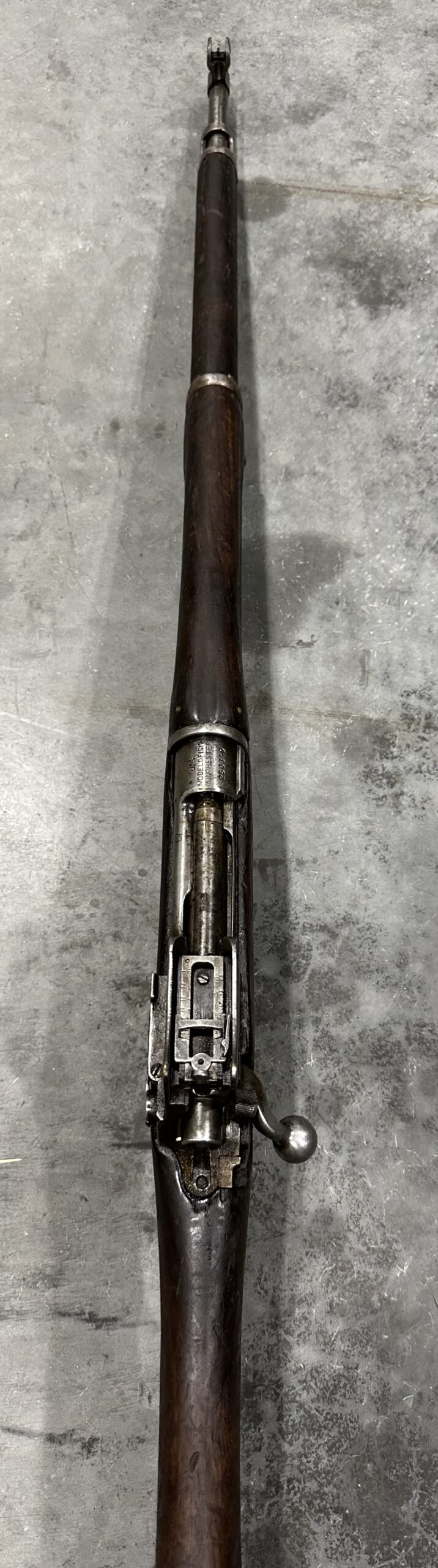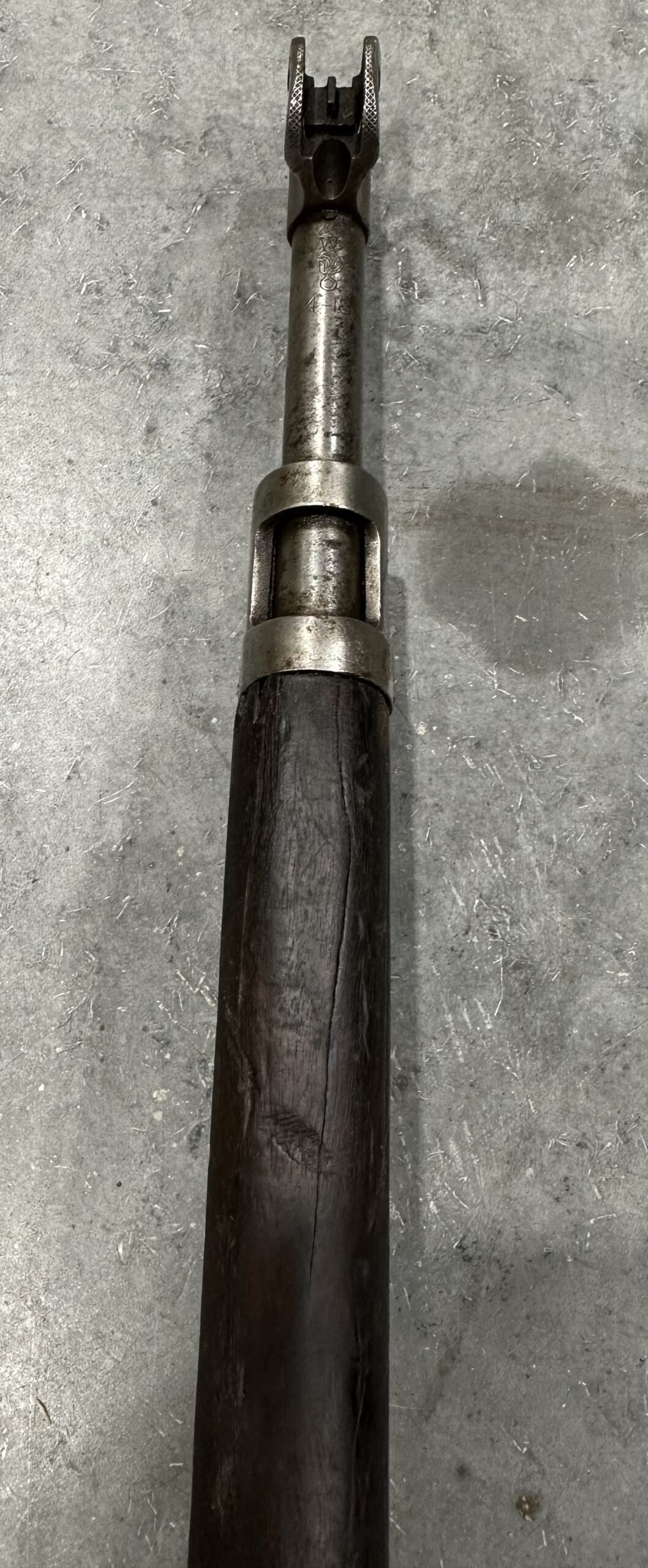 This rifle was manufactured by Winchester. The bore is in good condition with strong rifling and gauges at 2.5. The rifle is complete, fully functional, and has been test-fired. The barrel is Winchester-marked and dated 4-18. The wood is in good condition, showing typical dings and dents from use. Please note there is a small crack behind the receiver at the wrist, 1 crack at the upper handguard near the barrel, 1 crack at the buttstock.