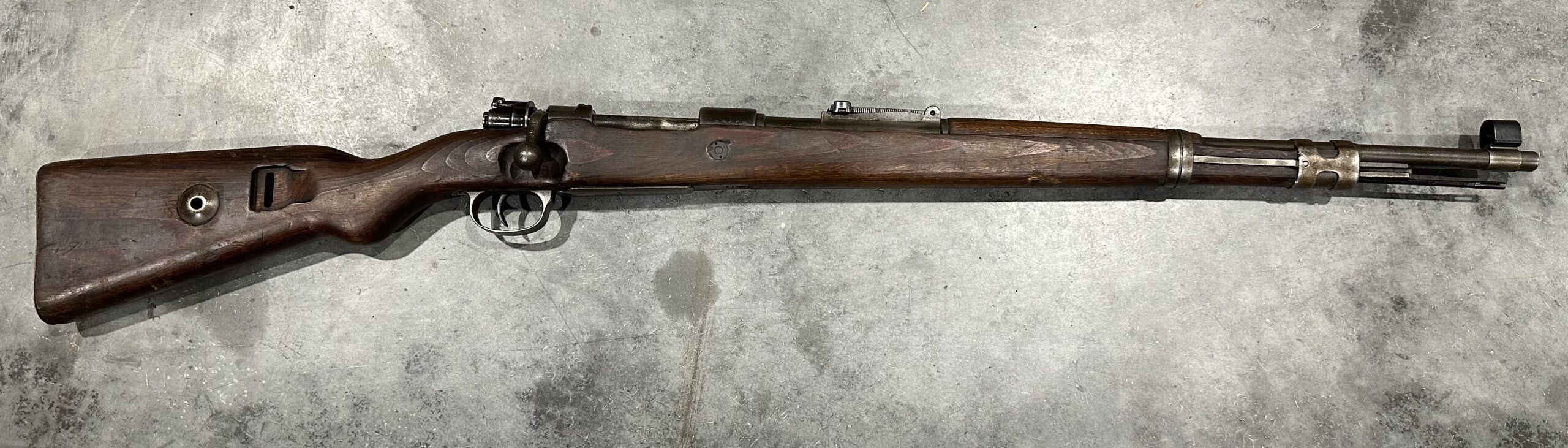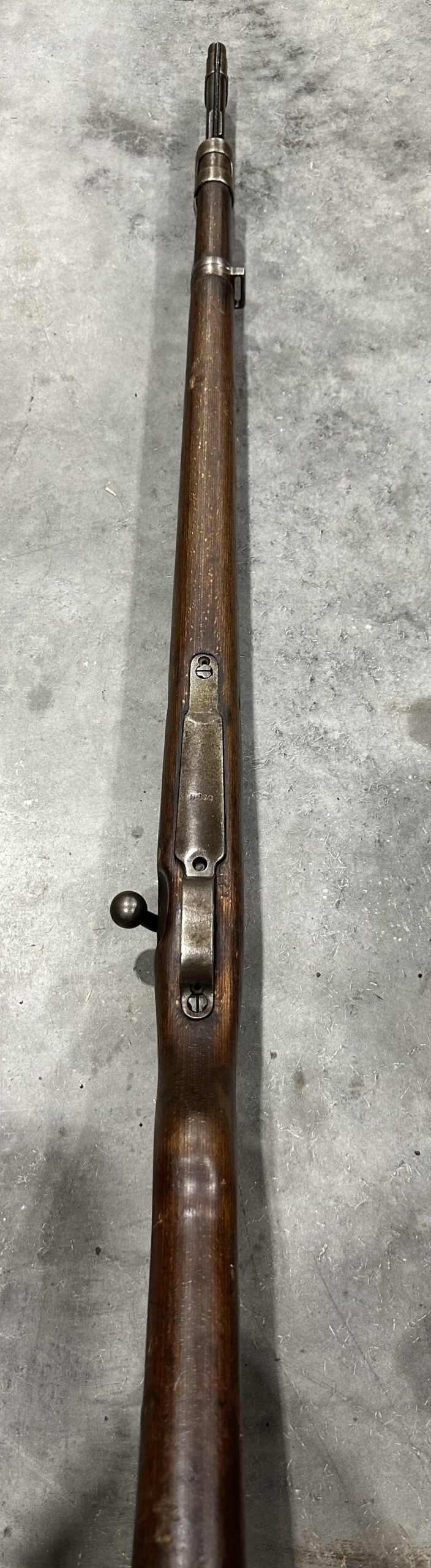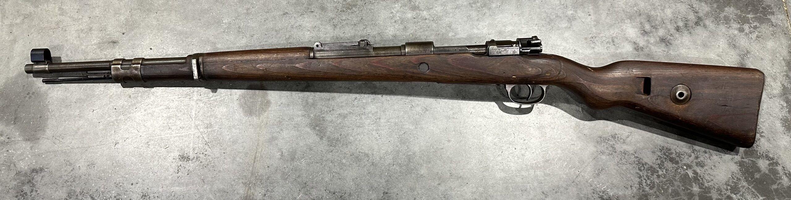 This rifle was fully disassembled, cleaned, and reassembled. It is 100% functional. The metal retains a good finish; the bore is in fair condition with rifling worn near the muzzle.