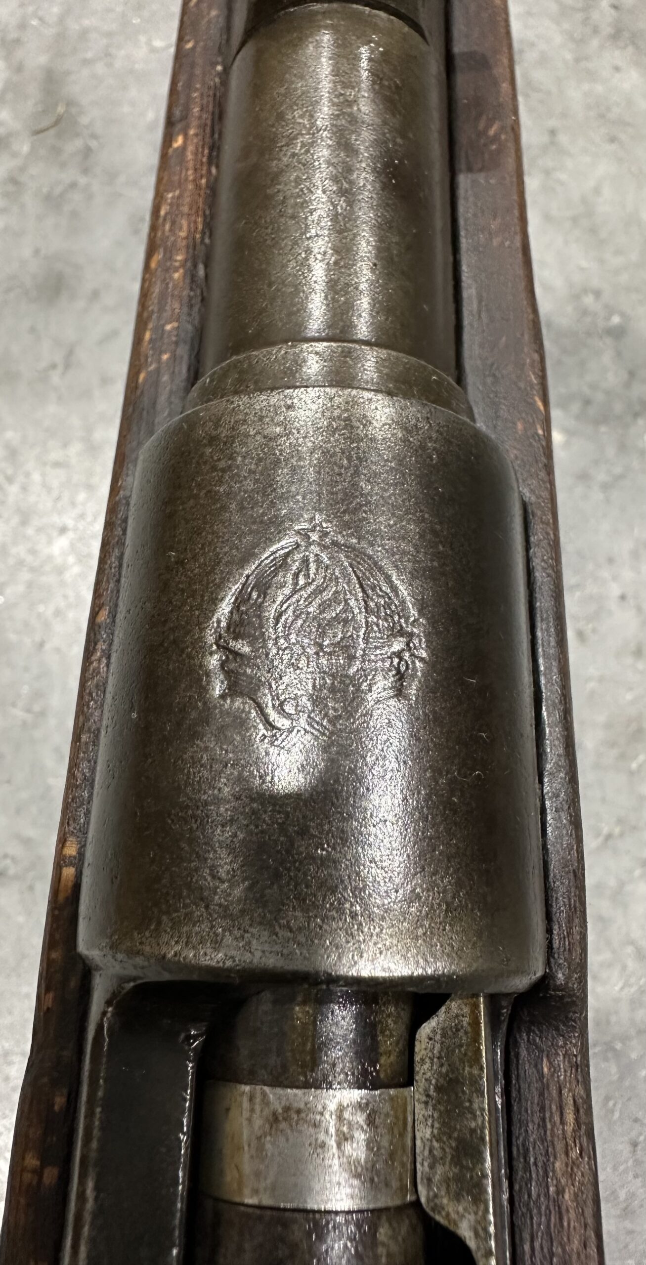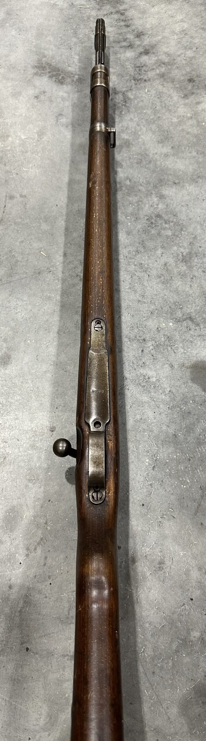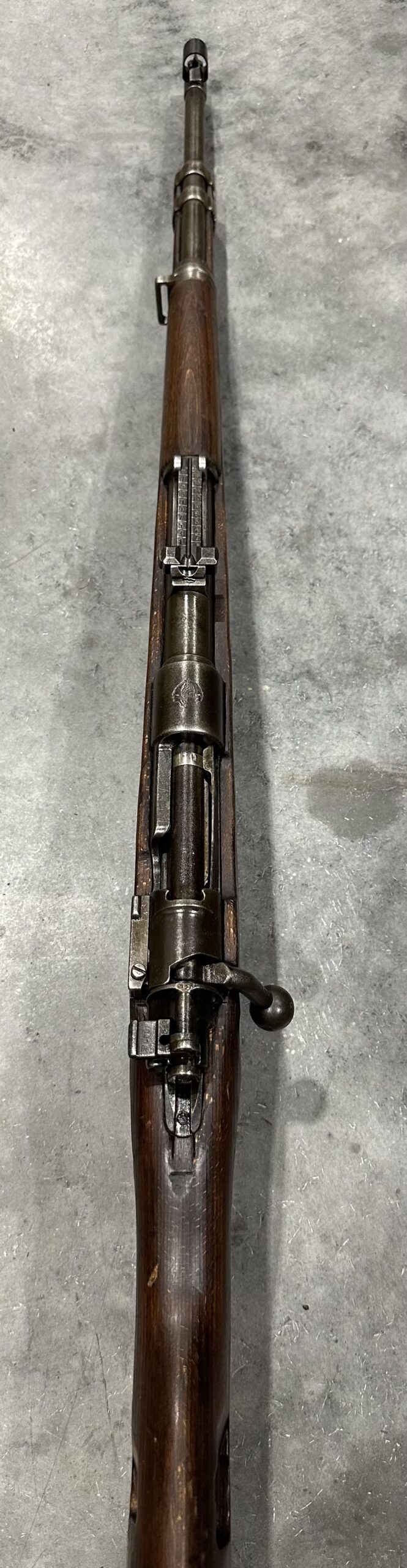 This rifle was fully disassembled, cleaned, and reassembled. It is 100% functional. The metal retains a good finish; the bore is in fair condition with rifling worn near the muzzle.